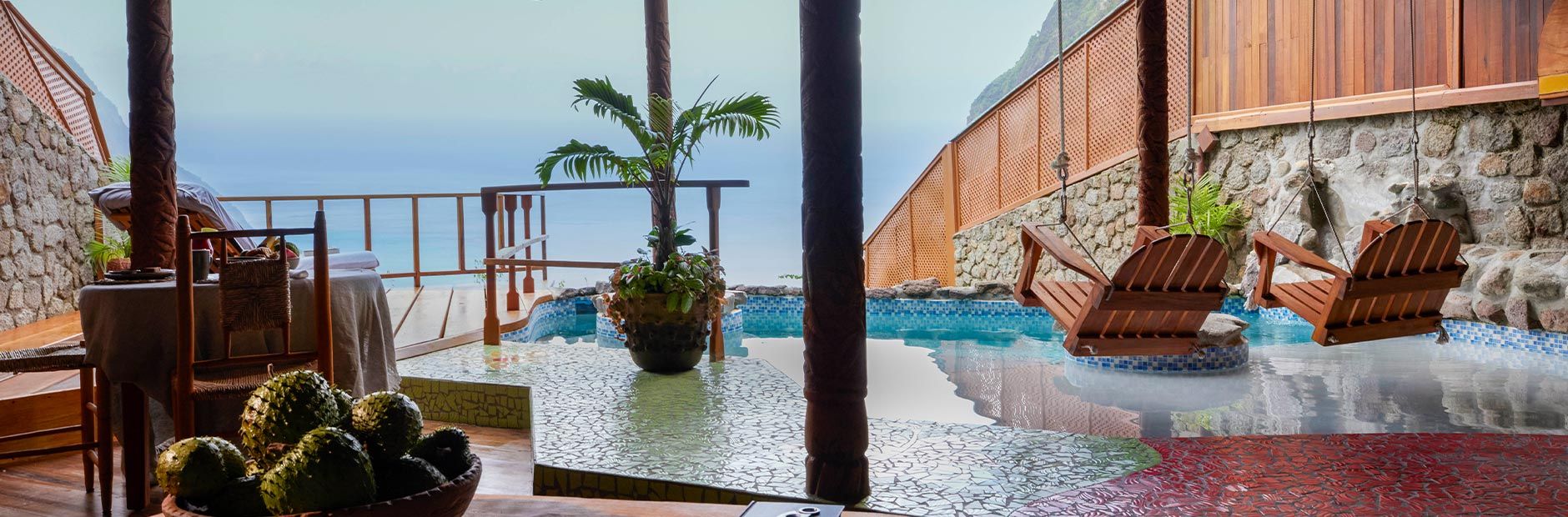 From the moment you arrive, you’ll feel the magic of this one-of-a-kind destination—hand-built with artistry and love from local wood, stone, and tile. Our 37 exclusive villas and suites feature the resort’s signature three-wall design, opening to uninterrupted views of the Pitons, the Caribbean Sea, and the lush rainforest below. Each private space is enhanced with a heated plunge pool, creating your personal sanctuary in paradise.